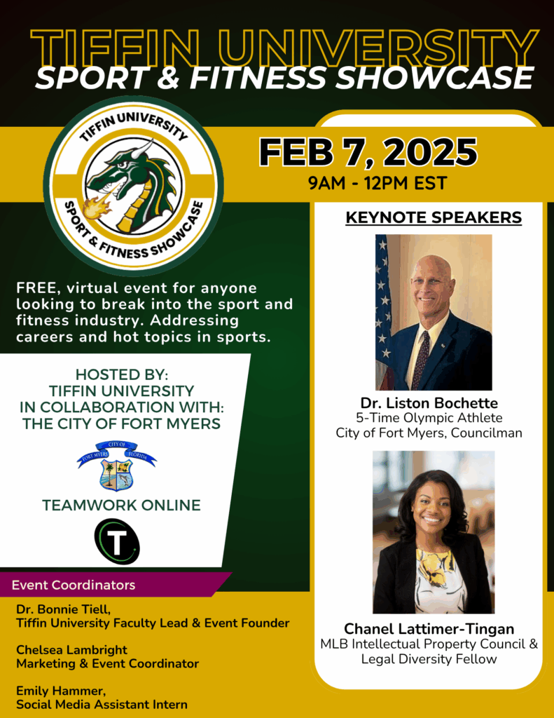 The 2024 event partnered Tiffin University and the City of Fort Myers in cooperation with Florida Gulf Coast University and the United States Sports Academy to engage with over 60 speakers in 16 breakout rooms focusing on careers and hot topics in sports. Over 300 participants zoomed in and out of each of the breakout rooms to engage, network and connect with industry professionals throughout the world.
